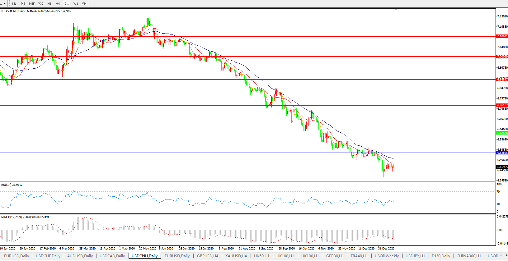 备选策略: 在6.6265之上,看涨,目标价位为6.7615,然后为6.8889。