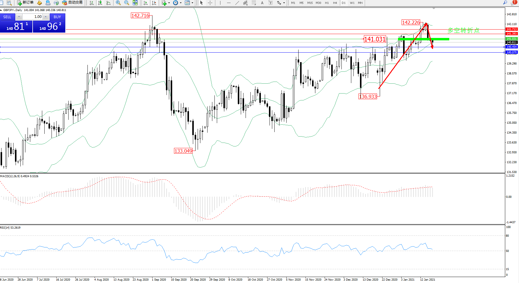 技术点评:多头动力延续布林带指标通道中上轨区间持续震荡上扬态势良好,高位抵达142.226位置遇阻回撤,纠结于中轨附近持续窄幅整理中,布林带指标呈收口走势维持向上移动中,关注中轨上側附近徘徊,MACD指标处于0轴线上方维持整理平移中,RSI指标处于50均衡线上方弱势徘徊中;