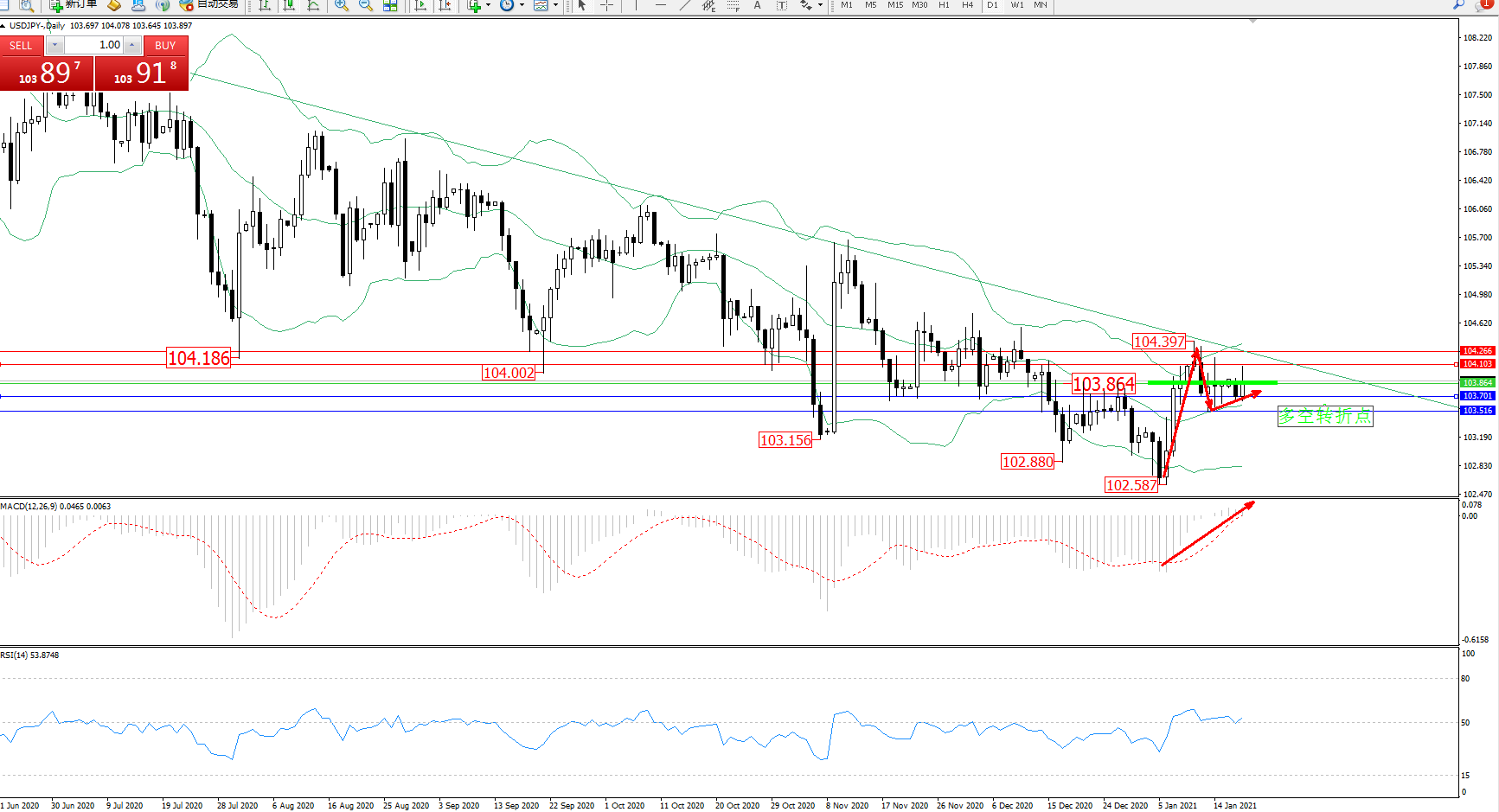 美元兑日元维持103.897附近节点震荡,日本开年重新陷入疫情紧急状态,日本央行在准备审议政策之际,这样的背景几乎可以确保其主要刺激计划将维持更长时间。央行2021年首次为期两天的会议将于周三召开,大约60%的经济总量目前处于紧急状态下,有可能引发本季度的双底萎缩。紧急状态可能为长期努力重振通货膨胀的中央银行提供更多掩护。日本央行12月将其对困境公司的疫情支持计划延长了六个月。鉴于纾困计划延长以及3月即将到来的政策评估,预计央行本周不会采取任何重大行动。在评估政策机制时,央行将寻求改善其收益率曲线控制和资产购买的有效性,同时进一步减轻负面影响并为最终退出敞开大门。目前,日本央行可以将一切归咎于新冠疫情,我预计有了疫苗,日本的疫情将在年中左右平静下来。然后,日本央行将面临真正的考验。