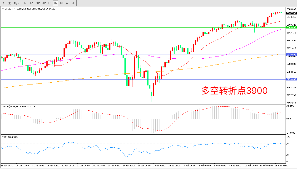 周一(2月15日)是美国的华盛顿诞辰纪念日,美国股市和休市一天,周二开盘,标普500小幅上行,截至发稿前收报3947.00点。目前新冠疫苗在全球主要国家成功推出和美国即将出炉新一轮大规模财政刺激,提高了人们对经济复苏的预期,风险情绪的高涨推高了市场对于股市的信心。