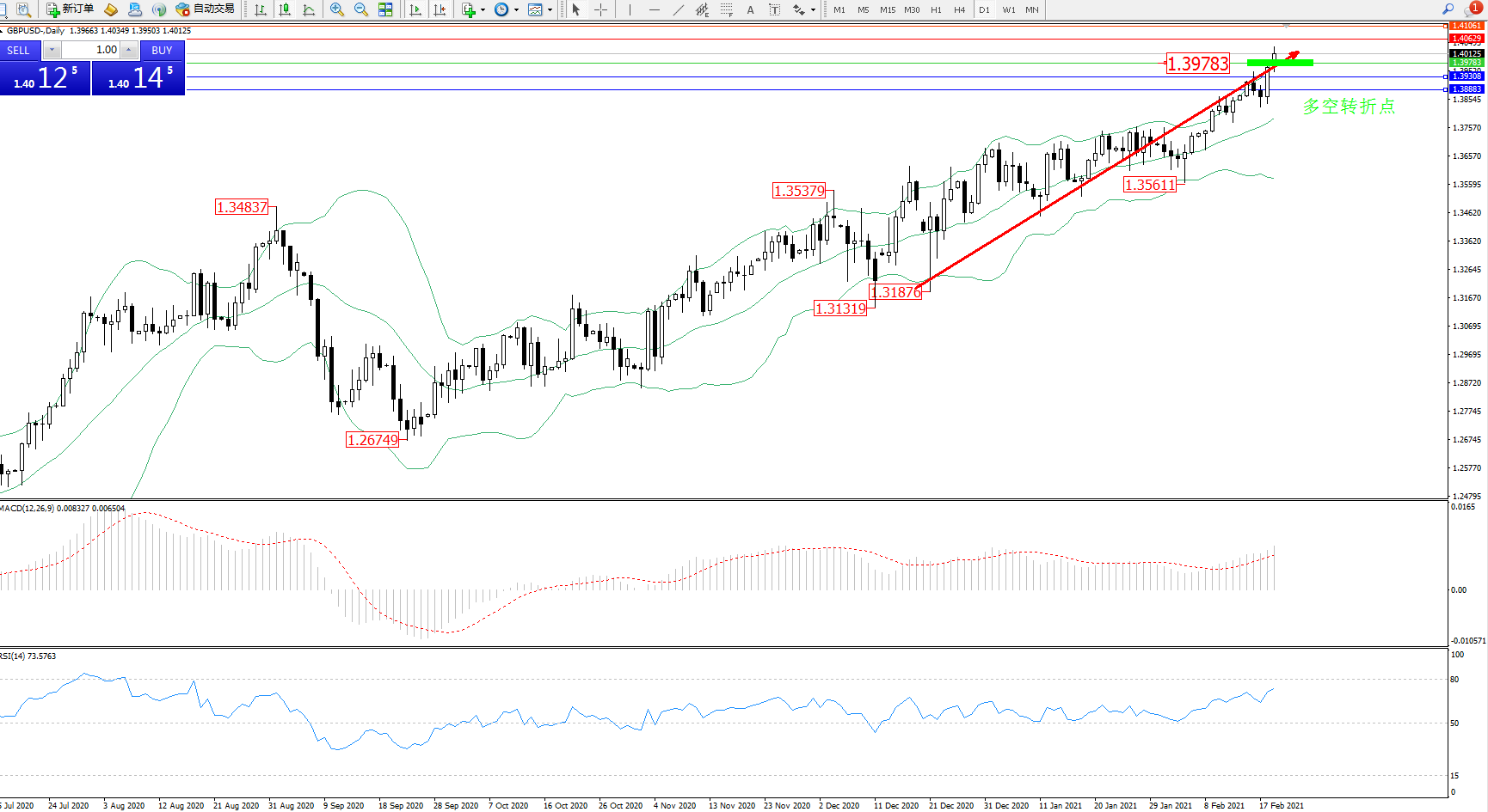交易策略:1.39783上方看涨,目标1.40629、1.41061