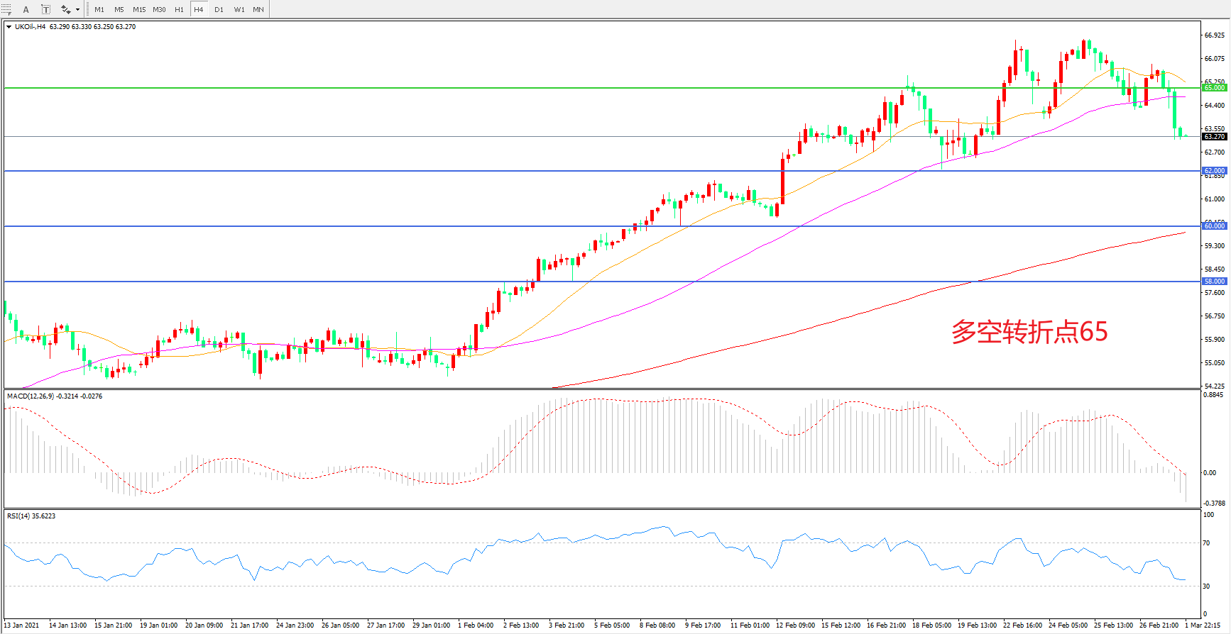 交易策略: 在65.00之下看跌,目标62.00 60.00