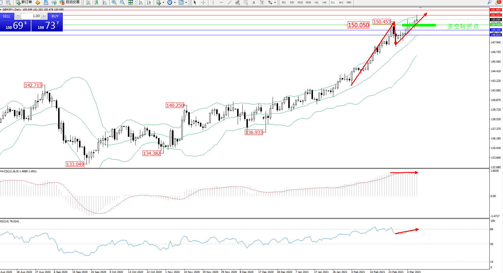多空转折点:150.050