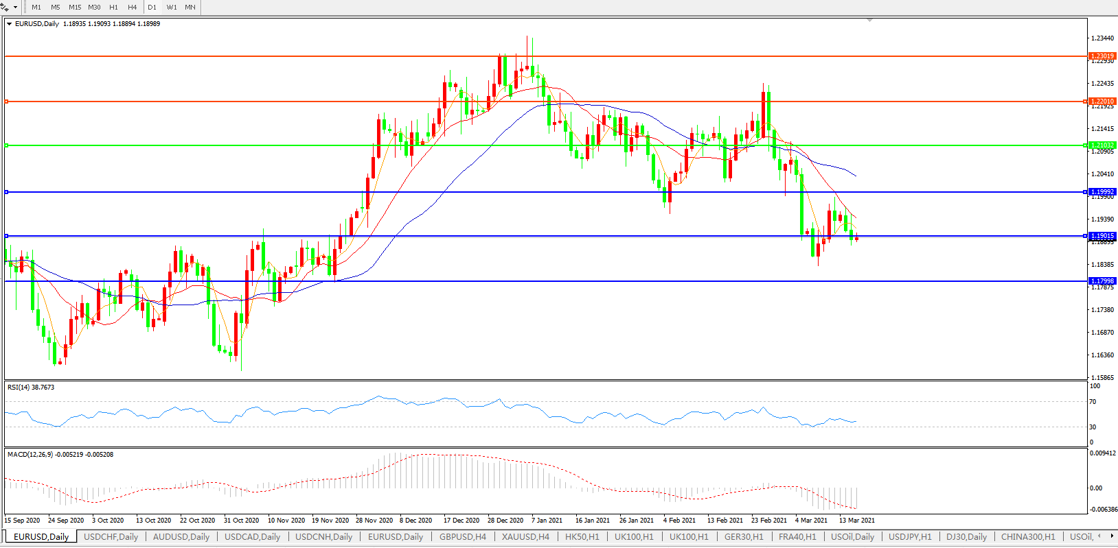 欧元兑美元EURUSD   日线图: