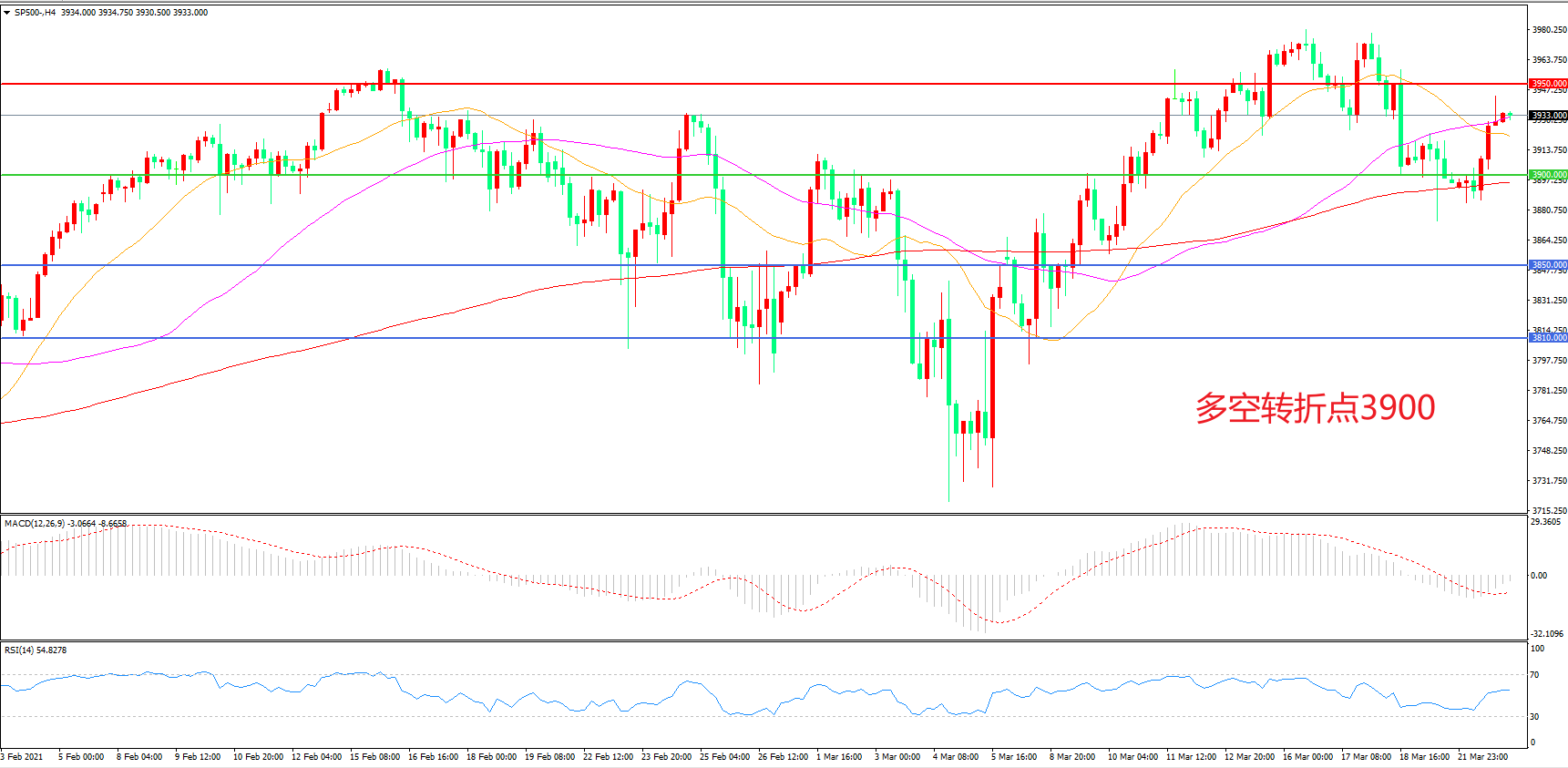 周一(3月22日),10年期美债收益率自高位回落9个基点,美股压力暂时缓和,大盘在科技股带领下震荡走高,标普500小幅回调,收报3934点。今日,美联储主席鲍威尔将与财政部长耶伦共同在众议院金融服务委员会作证。在事先公布的演讲稿中,鲍威尔表示,尽管美国经济距离完全复苏还为时尚早,但是动能似乎正在积聚当中,美联储仍将把利率维持在接近零的水平,宽裕的流动性环境对股市的平稳运行至关重要。