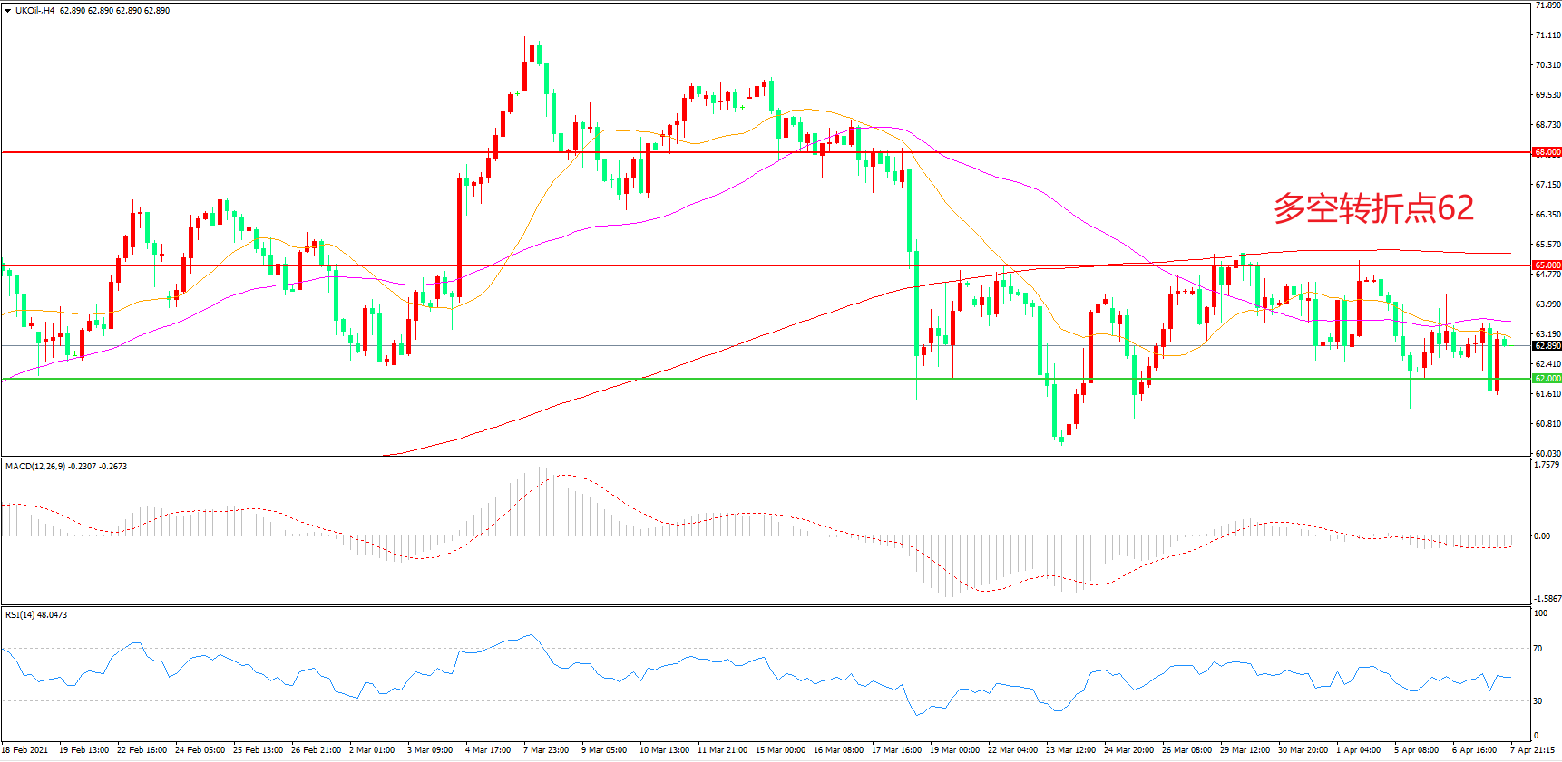 周三(4月7日),根据美国能源信息署公布的数据显示,当周EIA原油库存降幅减少352.20万桶,超过市场预期,但精炼油、汽油库存的增加引发了市场担忧,美油日内跌幅达一度高达2%,但由于全球复苏前景继续向好,投资者仍然看多油价未来前景,布伦特原油震荡回升,收报62.89美元/桶。