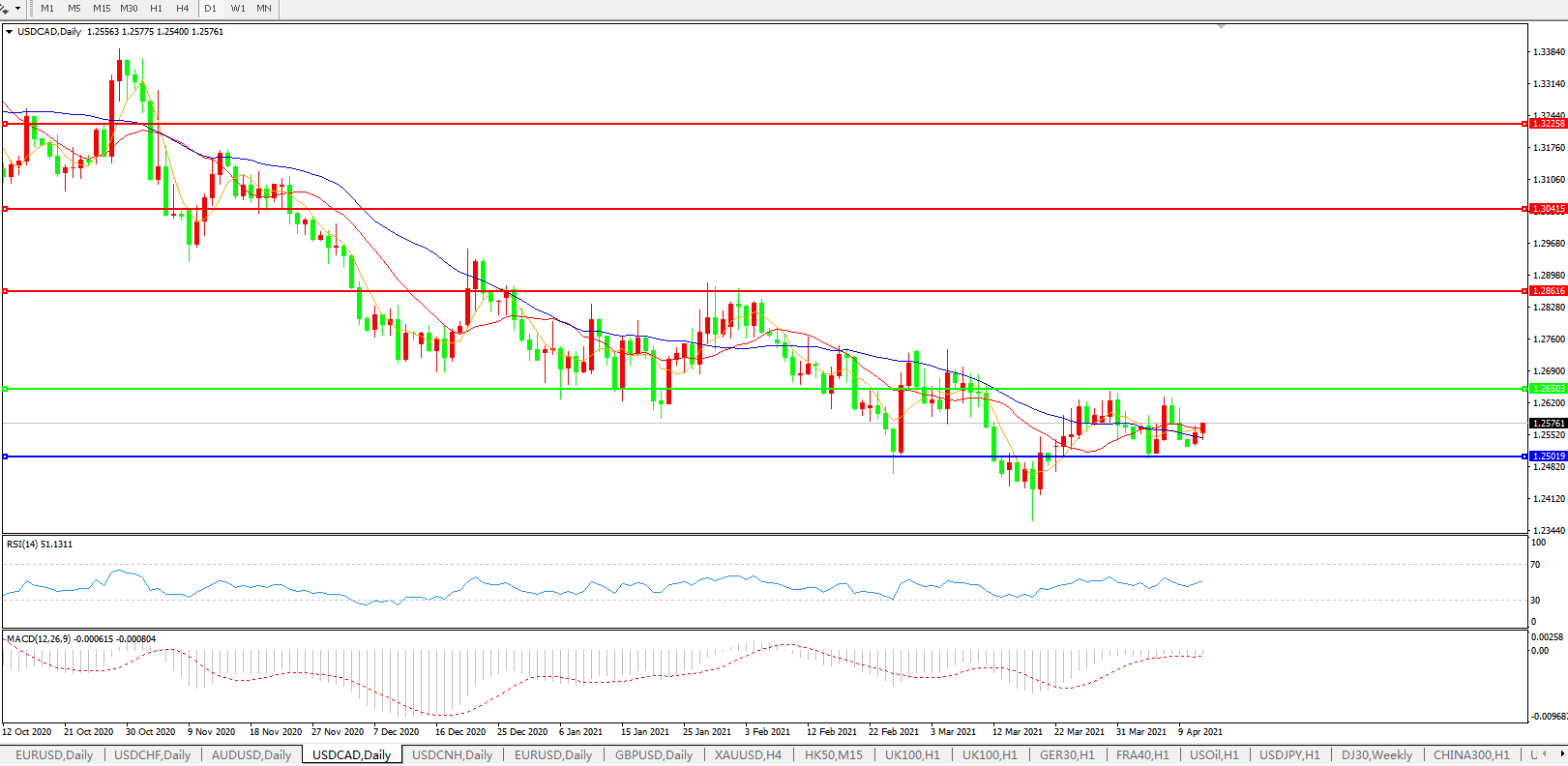 美元兑加元USDCAD    日线图: