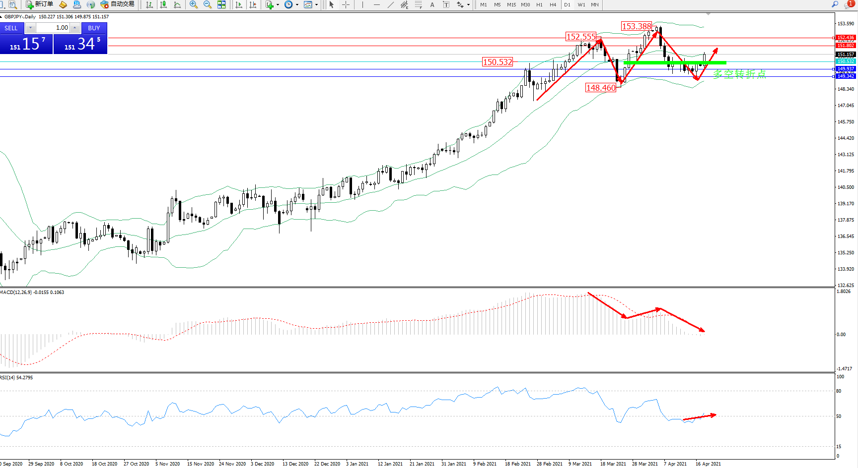 技术点评:多头动力延续布林带指标通道持续震荡上扬,高位触及153.388位置后震荡回撤下行,纠结于中下轨区间弱势整理平移,多头动力有伺上移迹象,触及中轨附近节点后震荡,布林带指标呈张口平移走势良好,关注中下轨区间节点,MACD指标高位空头动力震荡下行至0轴线附近节点开始徘徊,RSI指标纠结于50均衡线附近弱势整理后有上移迹象;
