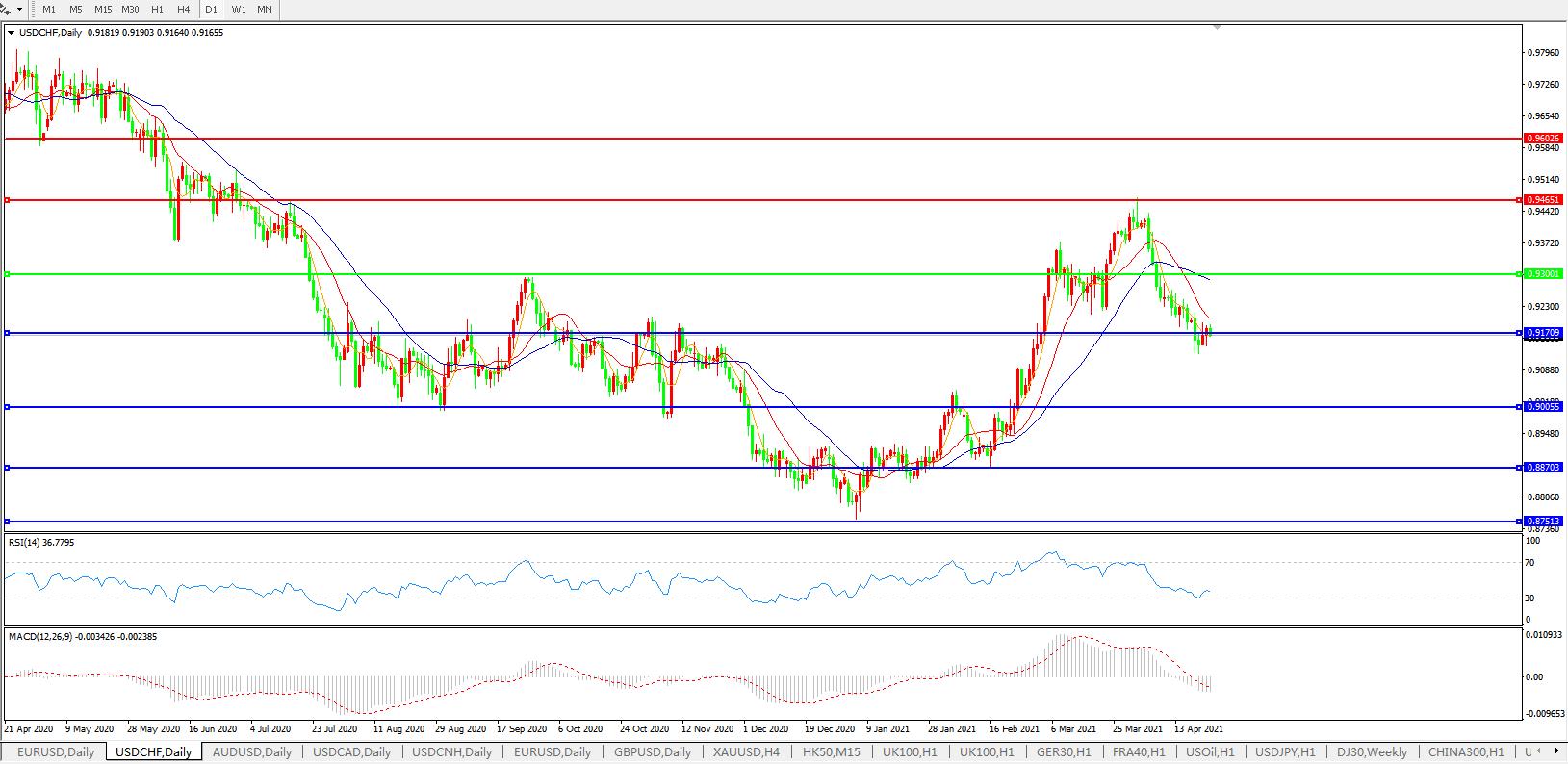 交易策略:0.9300下方看跌,目标0.9170、0.9000