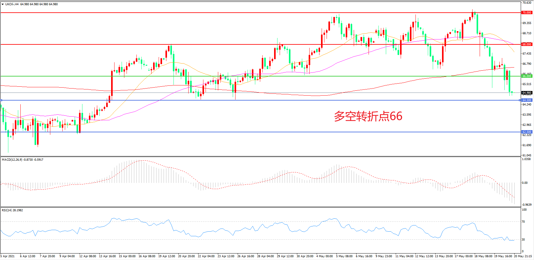 交易策略:在66.00之下看跌,目标64.50         62.50