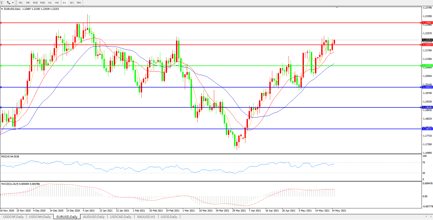 交易策略:1.2100上方看涨,目标1.2200、1.2300