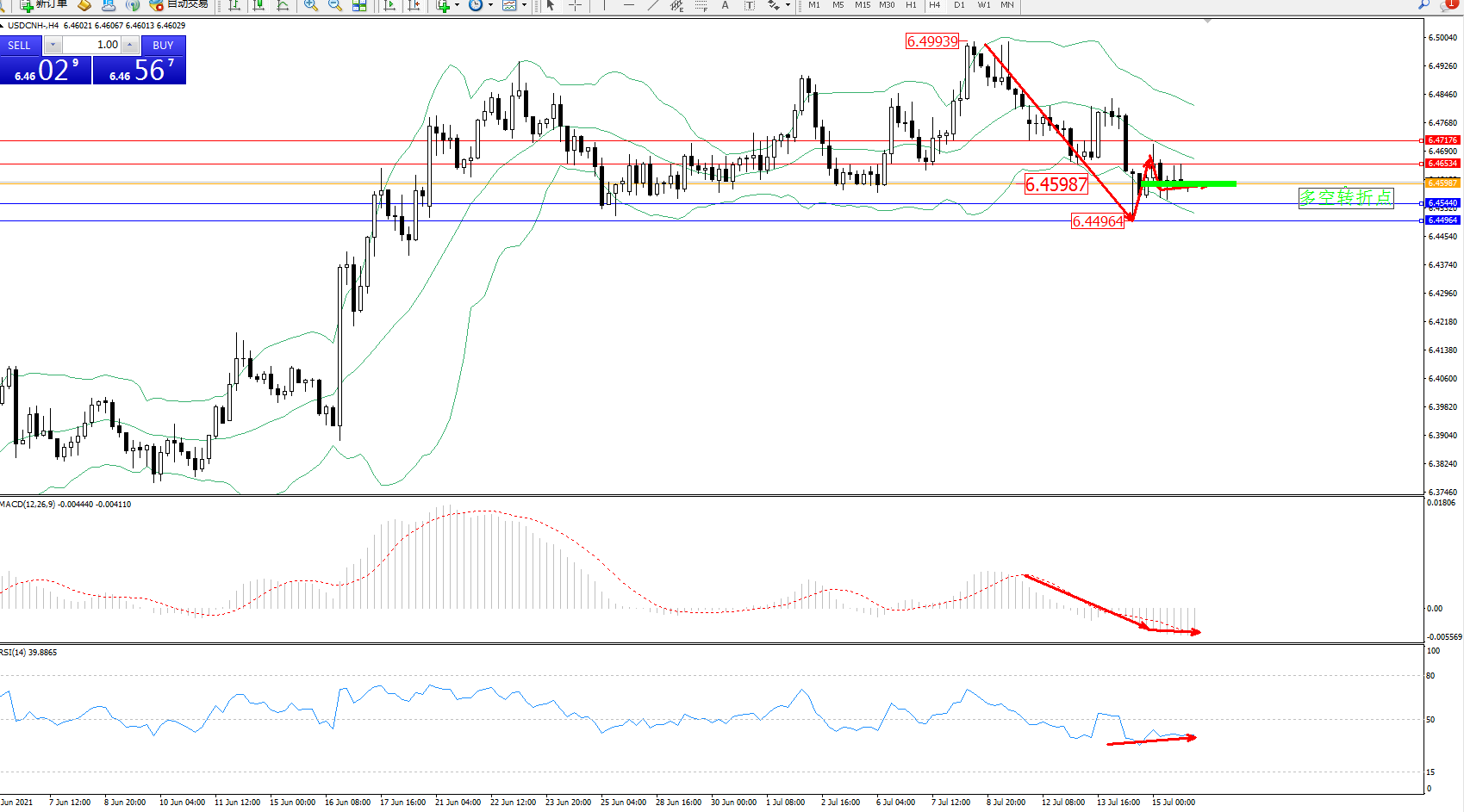 交易策略:6.45987上方看涨,目标6.46534、6.47176