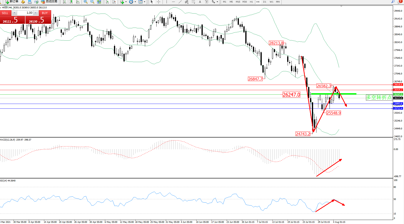 技术点评:空头动力延续布林带指标下轨附近持续下探,低位抵达24743位置呈V型反转上移,触及中轨附近后开始震荡短暂遇阻回撤,布林带指标呈收口走势持续中,MACD指标处于空头区域低位震荡缓慢上移,RSI指标处于50均衡线下方空头区域维持震荡中;