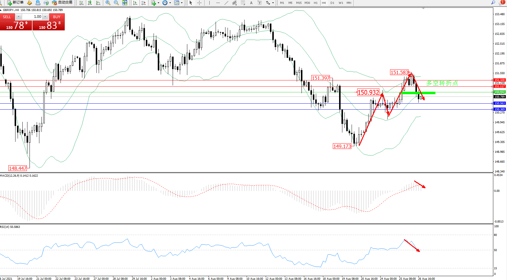技术点评:低位多头动力呈阶梯式震荡上移,触及布林带指标上轨151.583附近节点后遇阻回撤,纠结于中轨附近徘徊,布林带指标呈上行趋势走势后开始收口平移中,MACD指标多头动力持续震荡上移至0轴线上方弱势徘徊,RSI指标处于多头区域持续宽幅震荡后回撤至50均衡线附近整理;