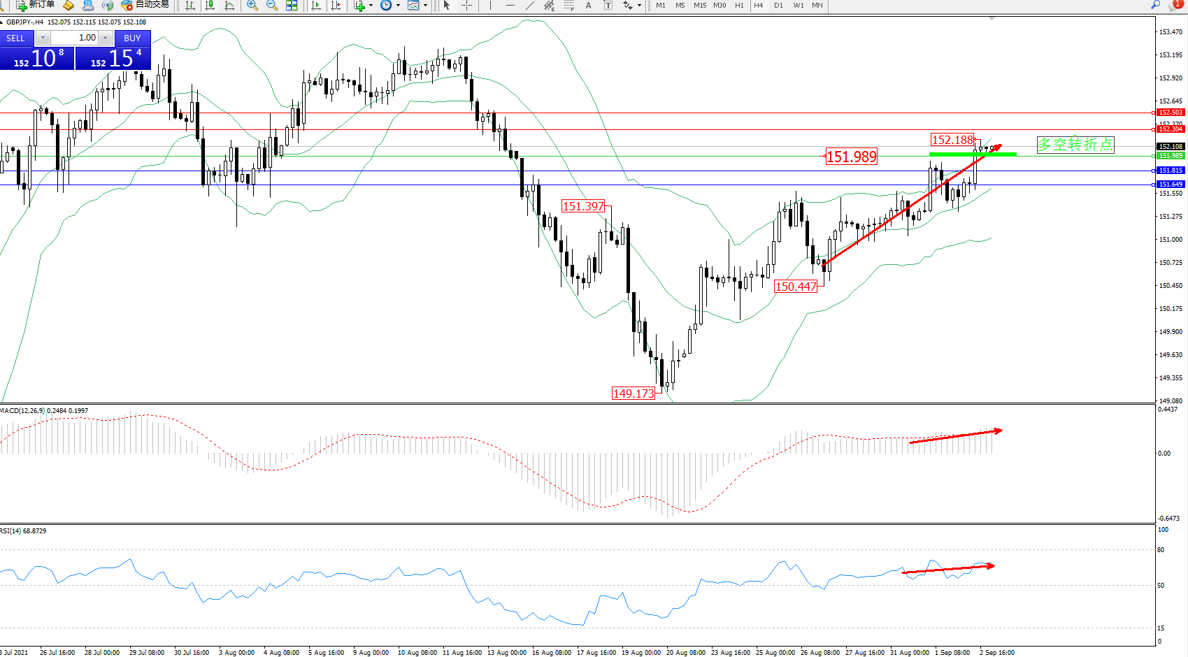 多空转折点:151.989