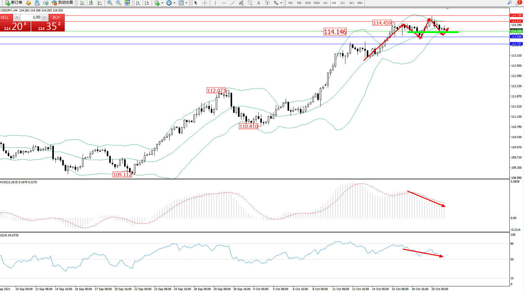 交易策略:114.146上方看涨,目标114.511、114.709