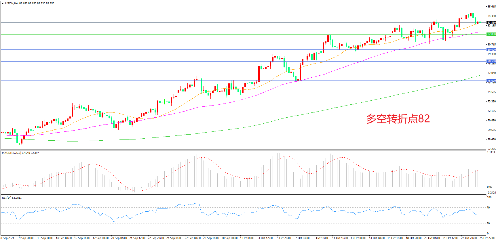 周一(10月25日),拉尼娜现象已在太平洋地区出现。这通常意味着北半球的气温低于正常水平,冷冬预期支撑油价继续维持此前强劲的上涨势头,美国WTI原油延续高位震荡,收报83.60美元/桶。从当前的市场上来看,目前并没有让盘面松动的利空因素出现,不管是供给端还是需求端,都很难大幅打压价格,油价延续高位震荡概率较大。