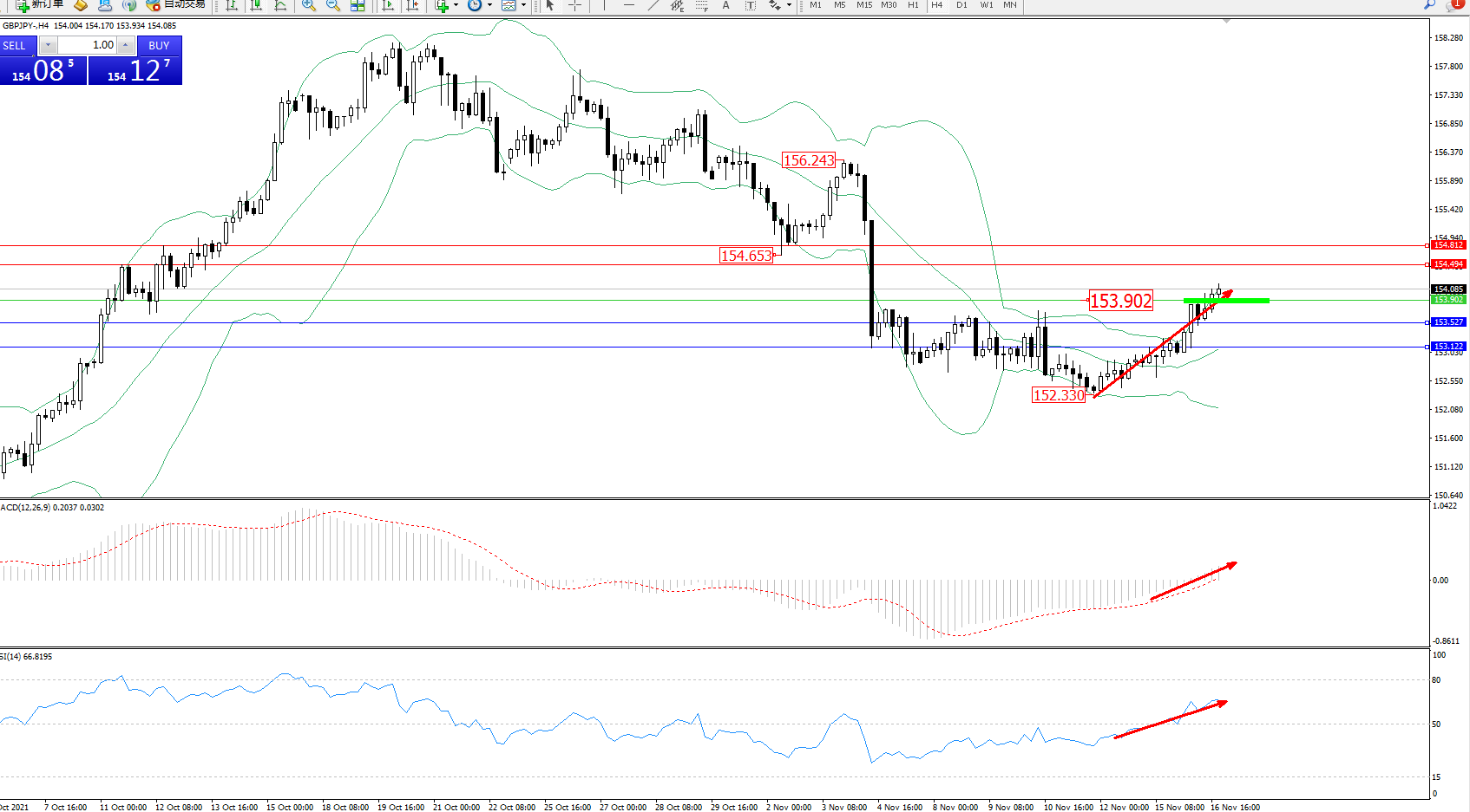 英镑兑日圆低位上移至154.105附近整理,最近与英国脱欧大臣弗罗斯特的会晤比上周要好得多。此外,英国首相约翰逊表示,与欧盟达成协议是可能的,并补充说,他们希望就《北爱尔兰议定书》达成谈判解决方案。最近疲软的消费者信心数据的方向完全不符。鉴于此,消费者也需提防零售销售数据表现不及预期的风险。