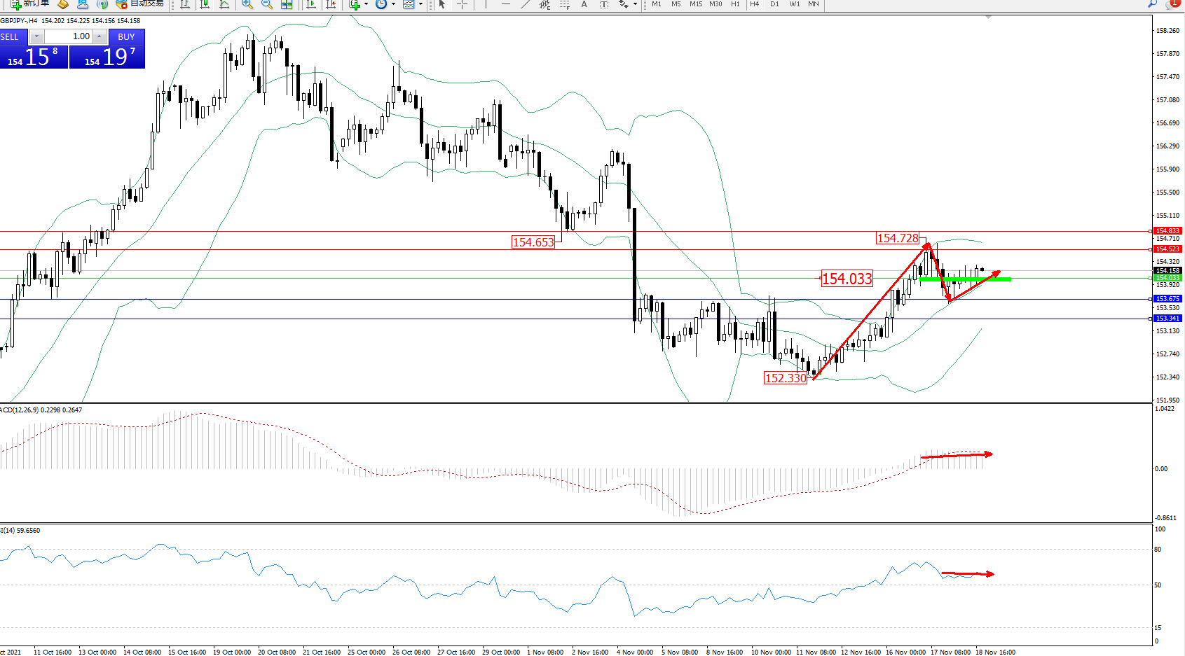 英镑兑日圆维持154.158附近整理,英国10月通胀率飙升至10年高位,这进一步支持了英国央行升息预期。本周稍早公布的数据显示,英国就业市场经受住了政府保就业补助计划结束的考验,缓解了对收紧货币政策风险的一大担忧。英国央行可能在12月份政策会议后,成为自新冠疫情爆发以来全球首个加息的大型经济体。英国家庭、企业和金融市场仍然相信,英国央行将使通胀率恢复至2%的目标。新聘员工(尤其是初级职位)的工资上涨并没有影响现有员工的全面加薪。她预计,通胀上升是暂时的。