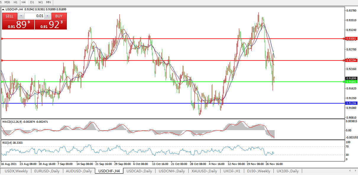 美元兑瑞郎USDCHF    4小时图: