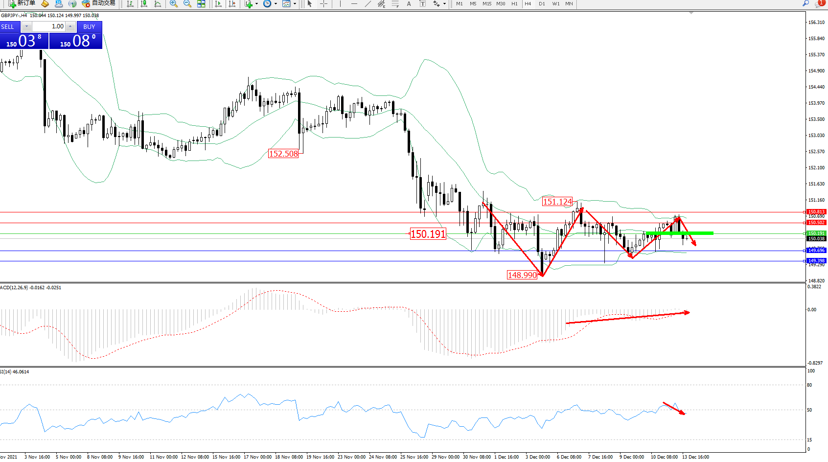 英镑兑日圆维持150.038附近震荡,英国央行面临着紧迫的通胀问题,本周三11月份CPI年率很可能接近5%,这应该会给“针线街”(英国央行所在地)敲响警钟。英国央行货币政策委员会在11月会议之前发出了相当多的强硬信号,但由于没有提到加息信号而受到严厉批评。由于疫情封锁的乌云正在英国上空聚集,尽管存在通胀风险,英国央行仍将保持谨慎。预计英国央行在2022年实施一系列紧缩措施中,首次加息时间是2月,这可能会先于美联储和欧洲央行。