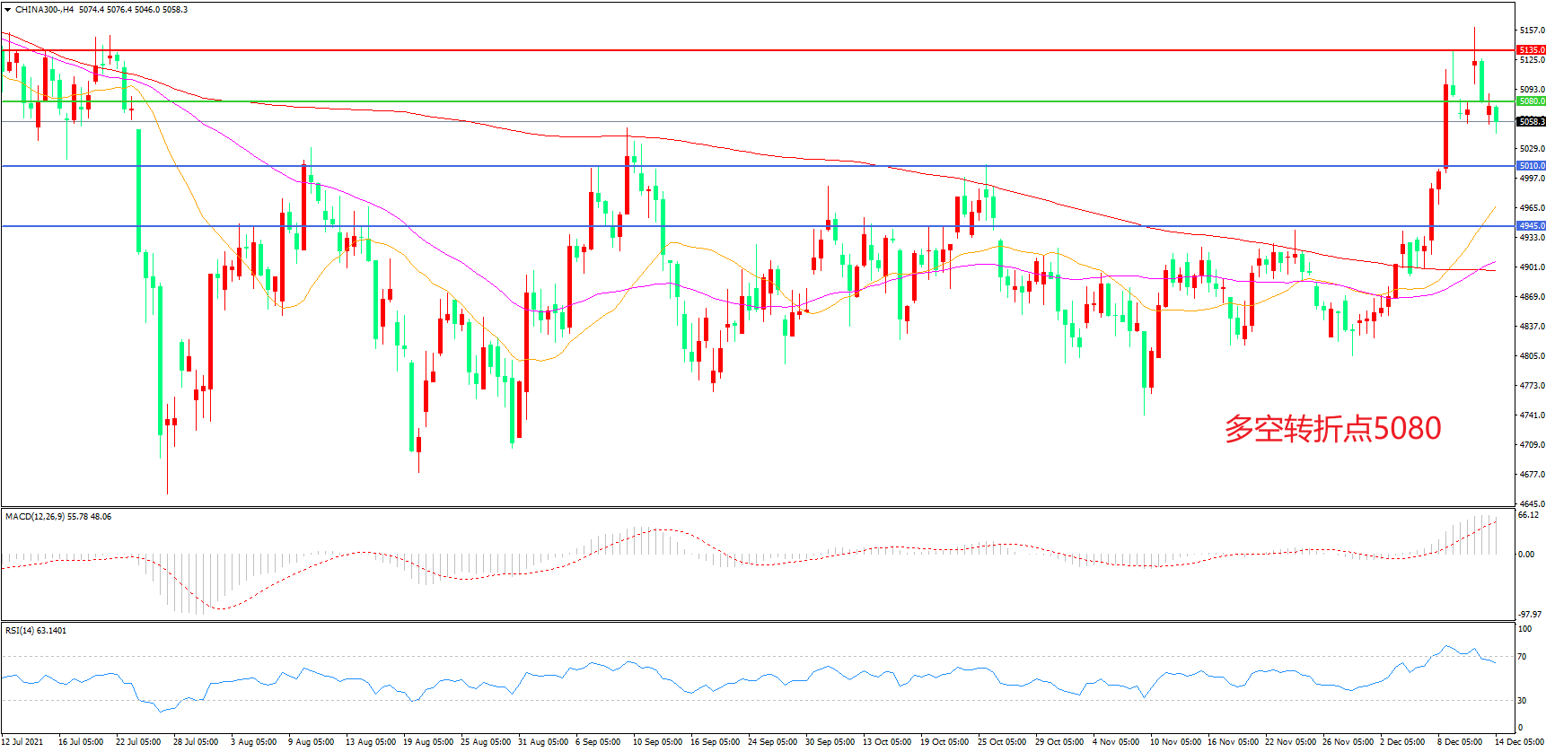 周二(12月14日),伴随着权重股回调,指数表现相对较弱,沪深300维持震荡整理态势,收报5058.3点。两市合计成交达到1.4万亿,北向资金净买入60.26亿元。目前沪深两市股指已经纷纷来到之前高点附近,同时成交量开始温和放大,看权重板块轮番走高,沪深300短期调整后仍有望继续上涨。