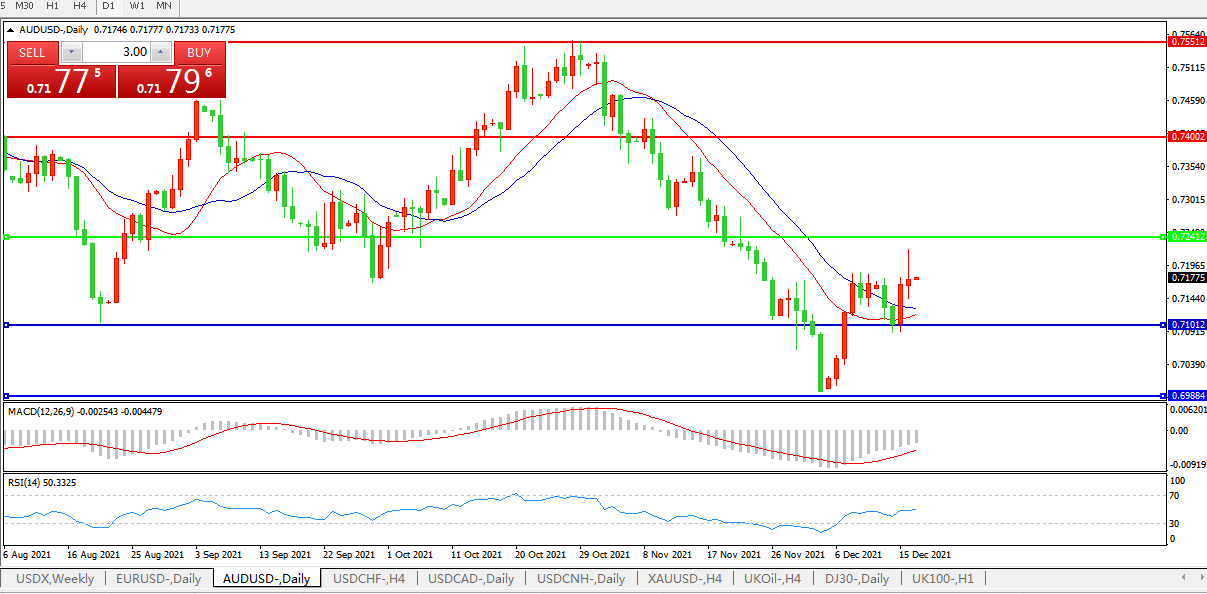 备选策略:0.7240上方看涨,目标0.7400、0.7550