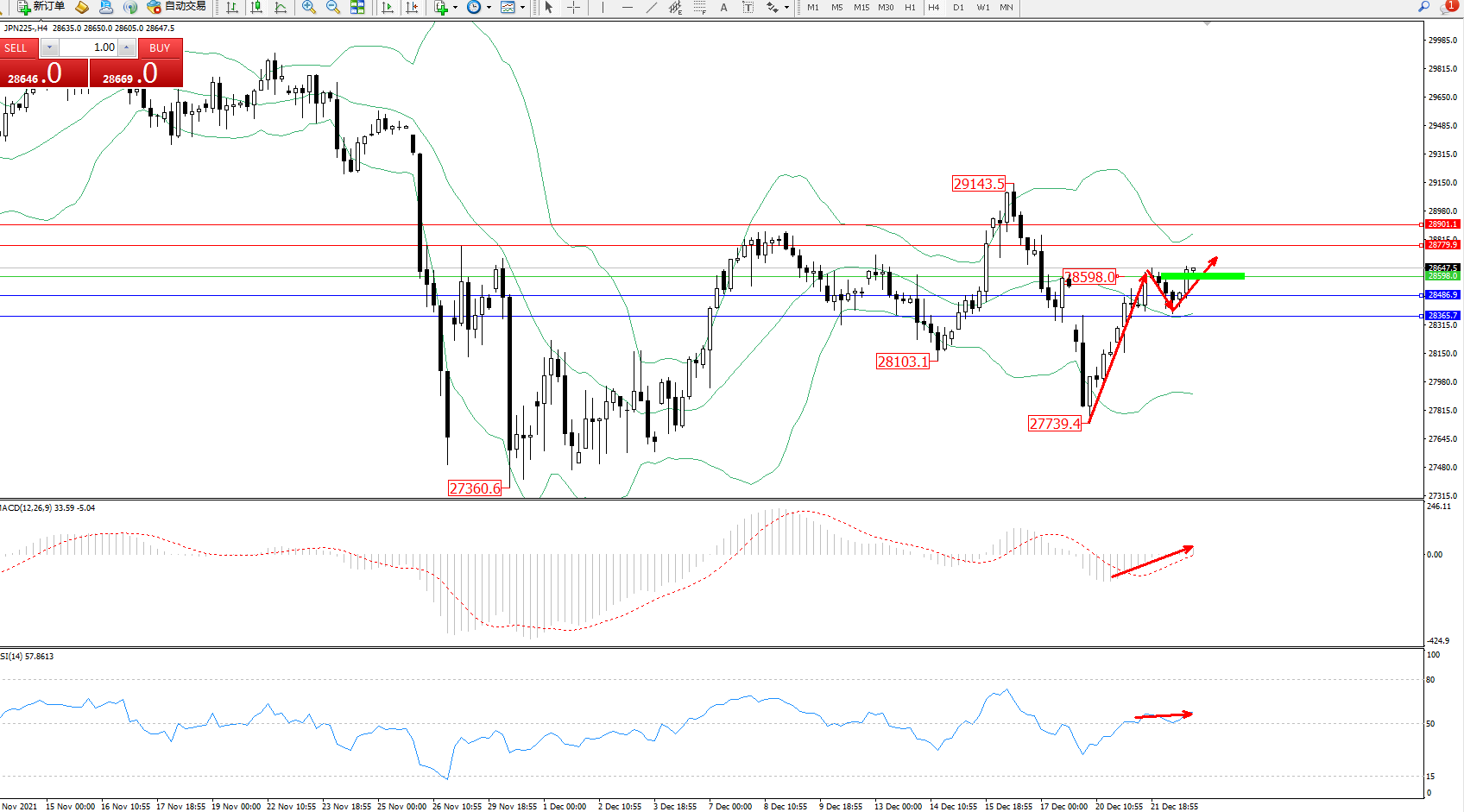 日经指数JPN225——4小时K线图显示: