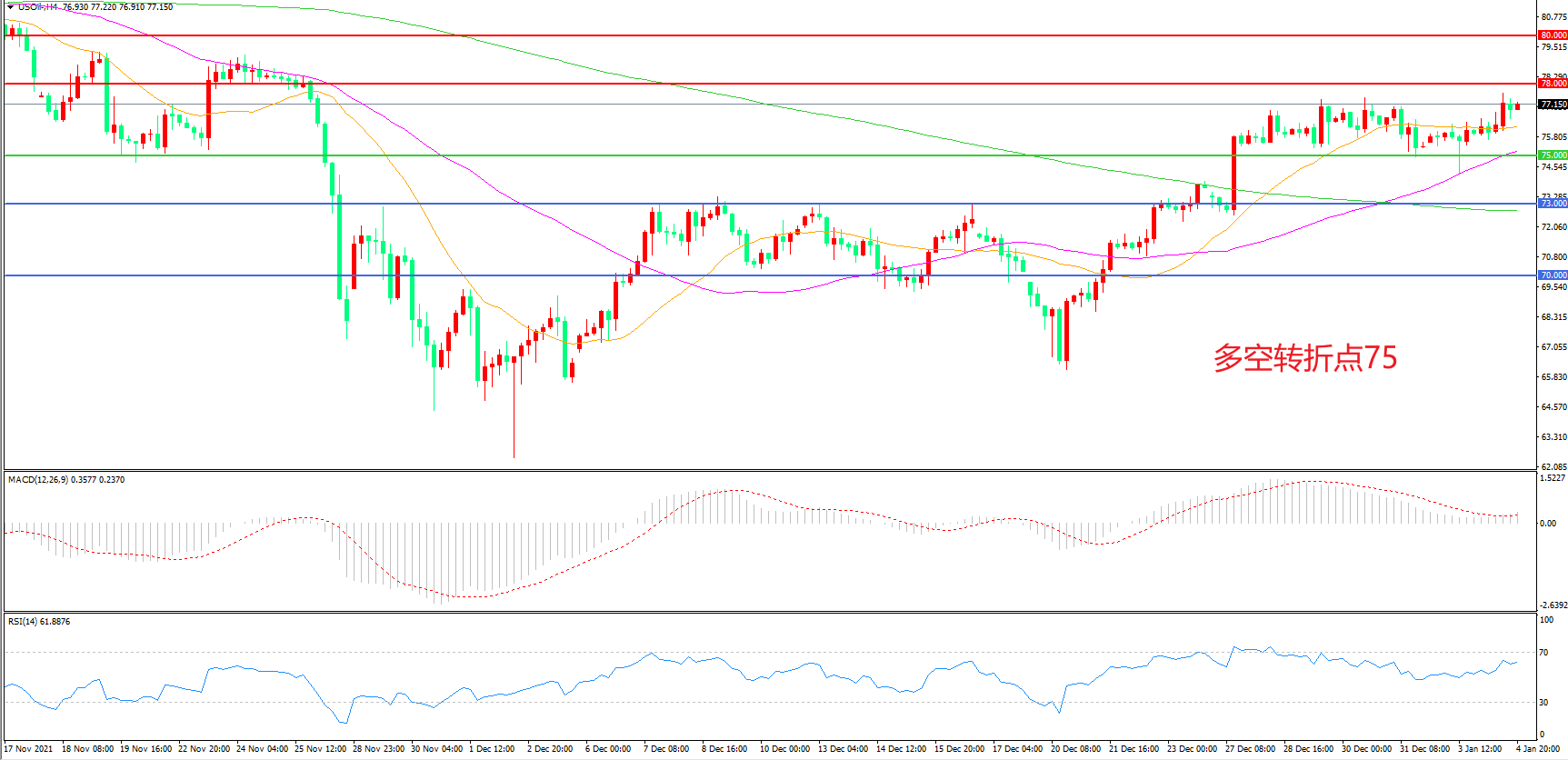 交易策略:在75.00之上看涨,目标78.00 80.00