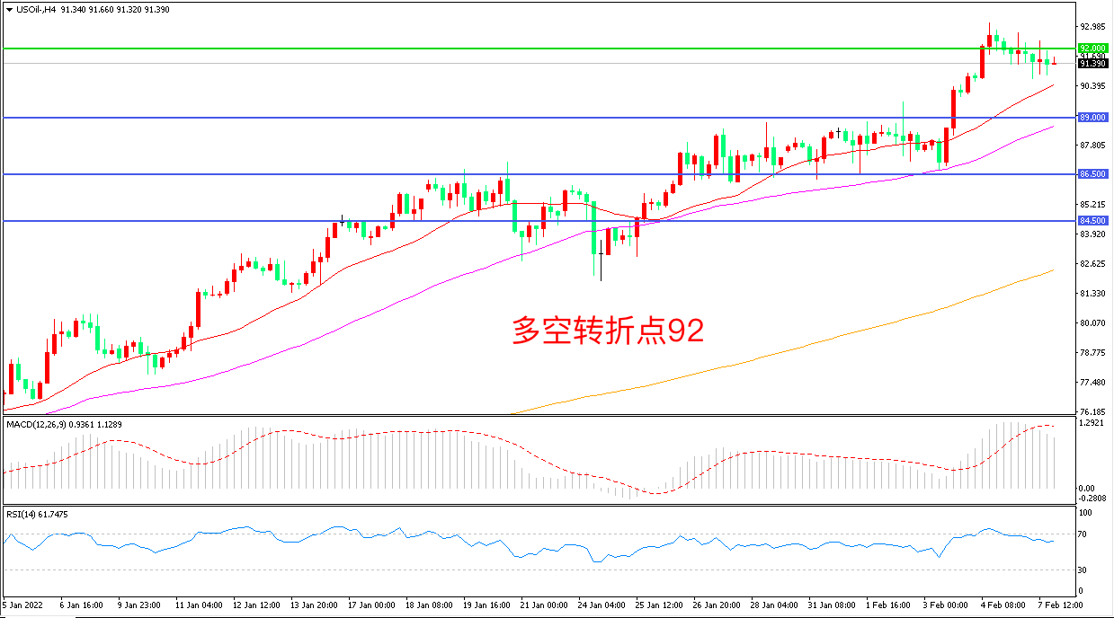 交易策略:在92.00之上看涨,目标95.00 98.00