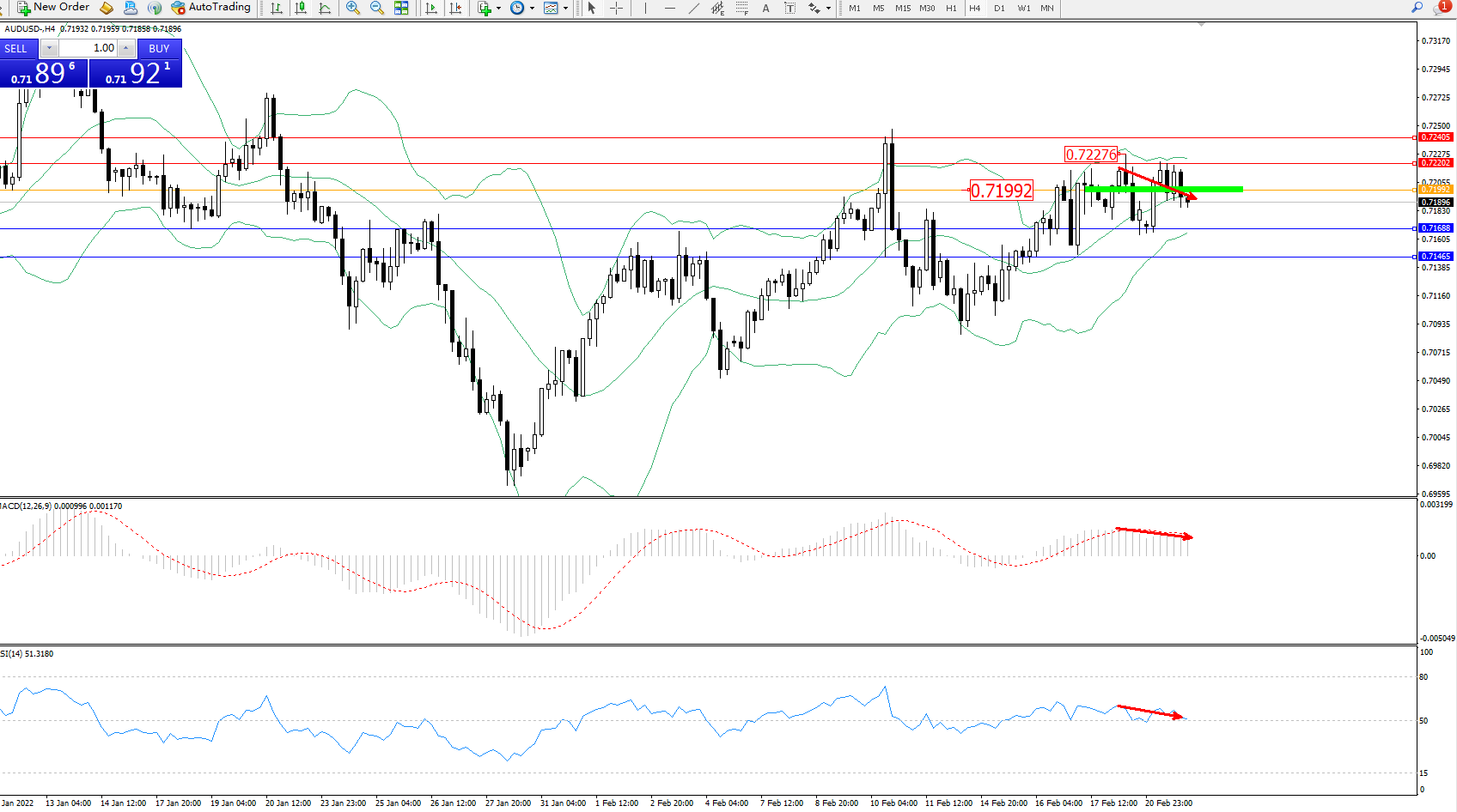 备选策略:0.71992上方看涨,目标0.72202、0.72405