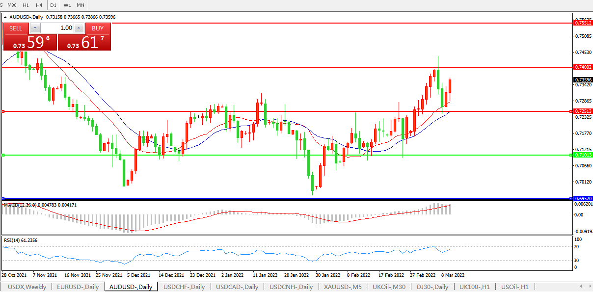AUDUSD  NZDUSD 美股恢复下跌模式,澳元兑美元继续上攻