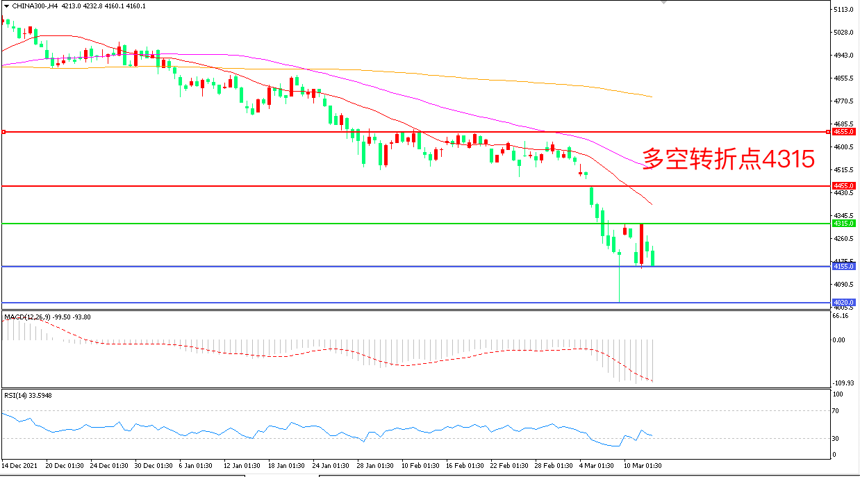 周一(3月14日),A股再度遭遇“黑色星期一”,沪深300长阴下坡,收报4166点。两市合计成交9699亿元,北向资金幅净流出144.08亿元。目前市场上悲观情绪较为浓厚。但是每一次重大拐点都是在极度悲观中诞生,在短期超卖与风暴模式之后,A股有望进入阶段性的反弹,投资者可耐心等待市场的企稳。