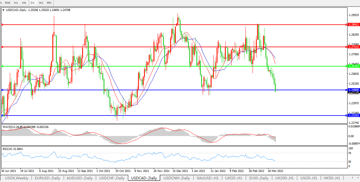 技术面简析:日图均线呈空头排列,汇价继续下行,MACD运行于0轴下且量能小幅放量,RSI小幅走弱,预计短期汇价大概率将进一步下行。