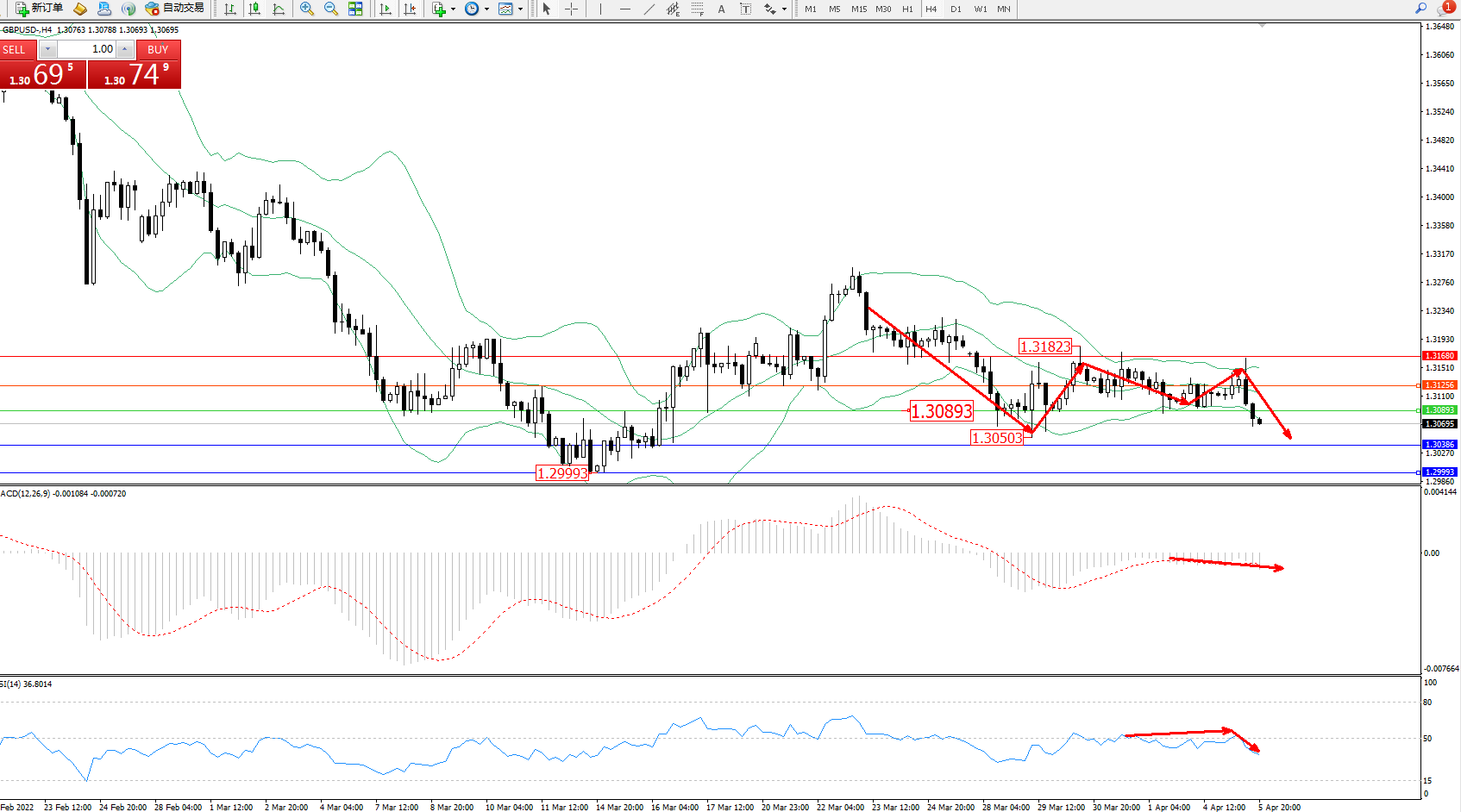 交易策略:1.30893下方看跌,目标1.30386、1.29993