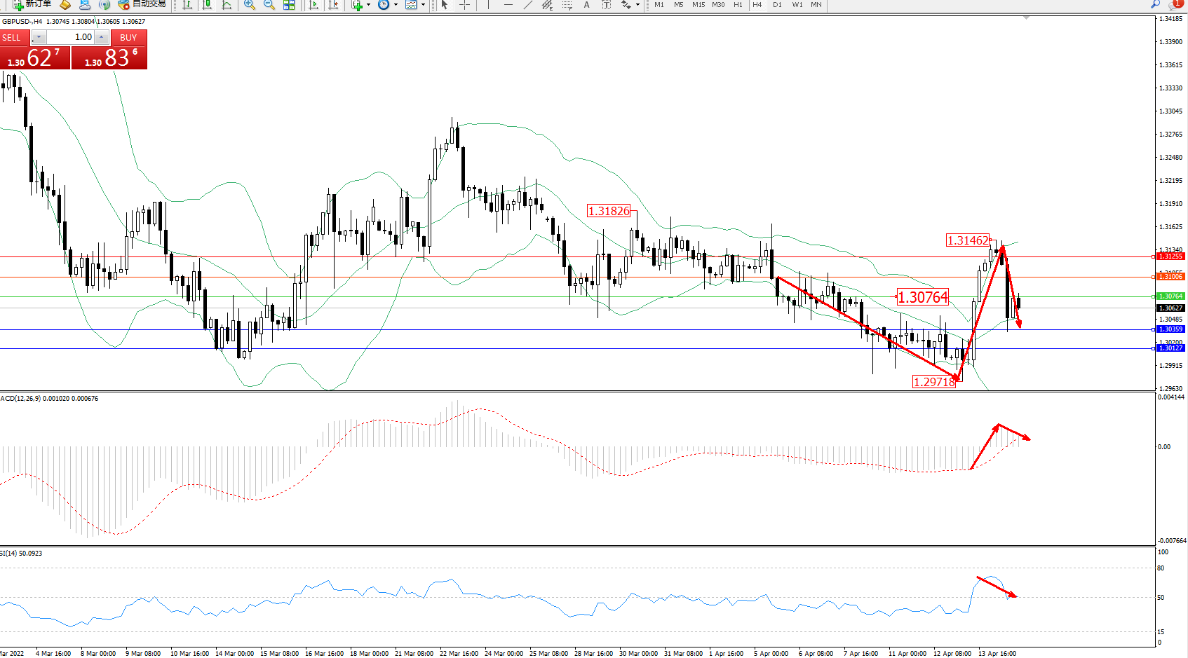 备选策略:1.30764上方看涨,目标1.31006、1.31255