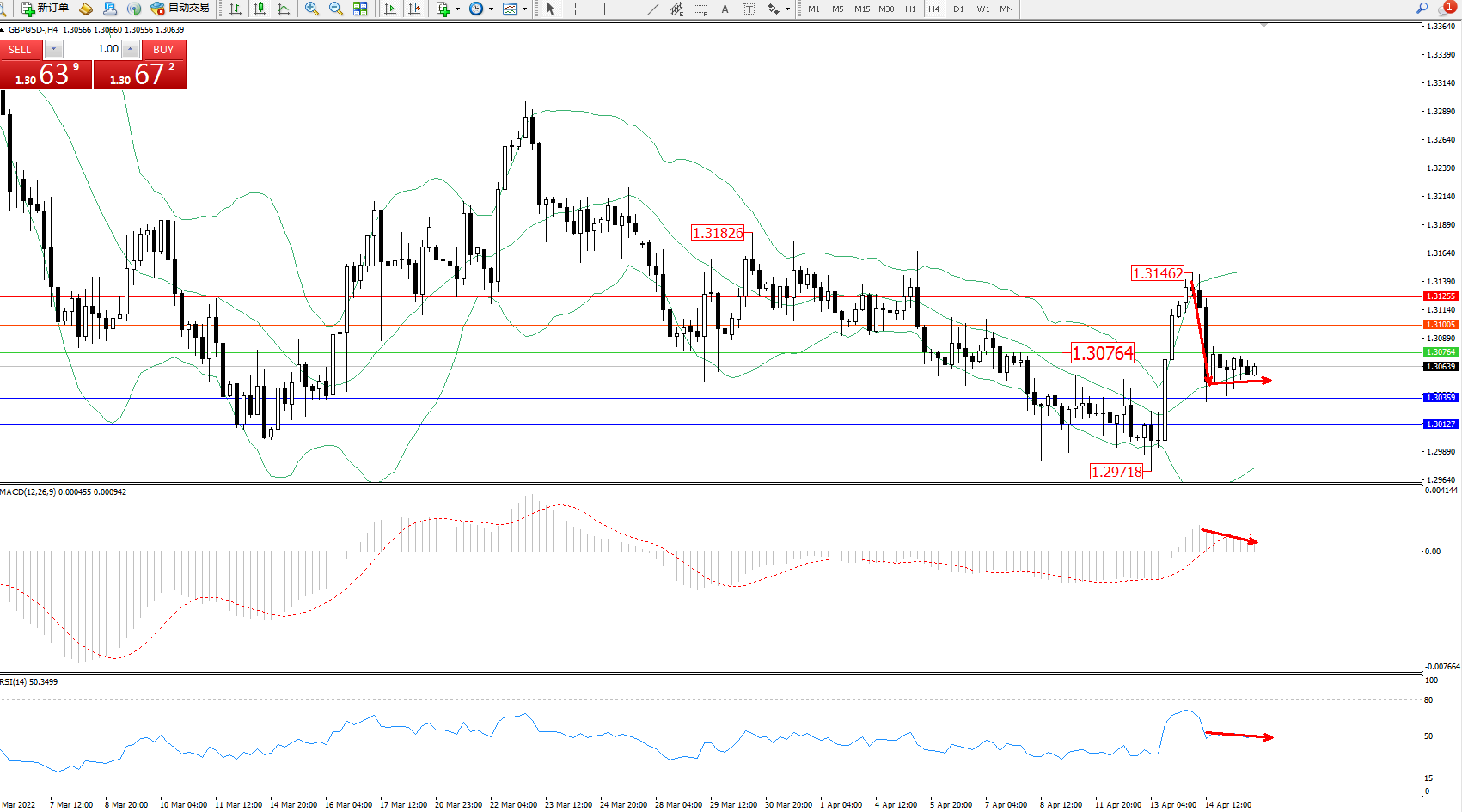 交易策略:1.30764下方看跌,目标1.30359、1.30127