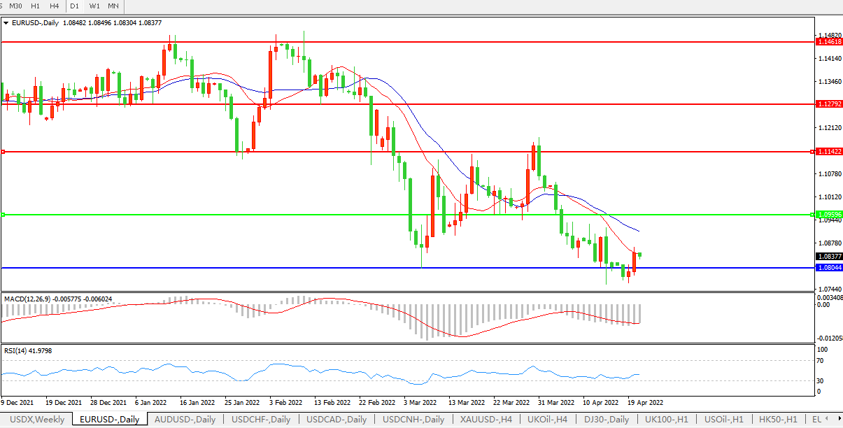 技术面简析:日图均线空头排列,汇价持续回落小幅反弹,MACD运行于0轴下方且量能0轴下小幅放量,RSI小幅走高,预计短期汇价大概率将在反弹修正后进一步下行。