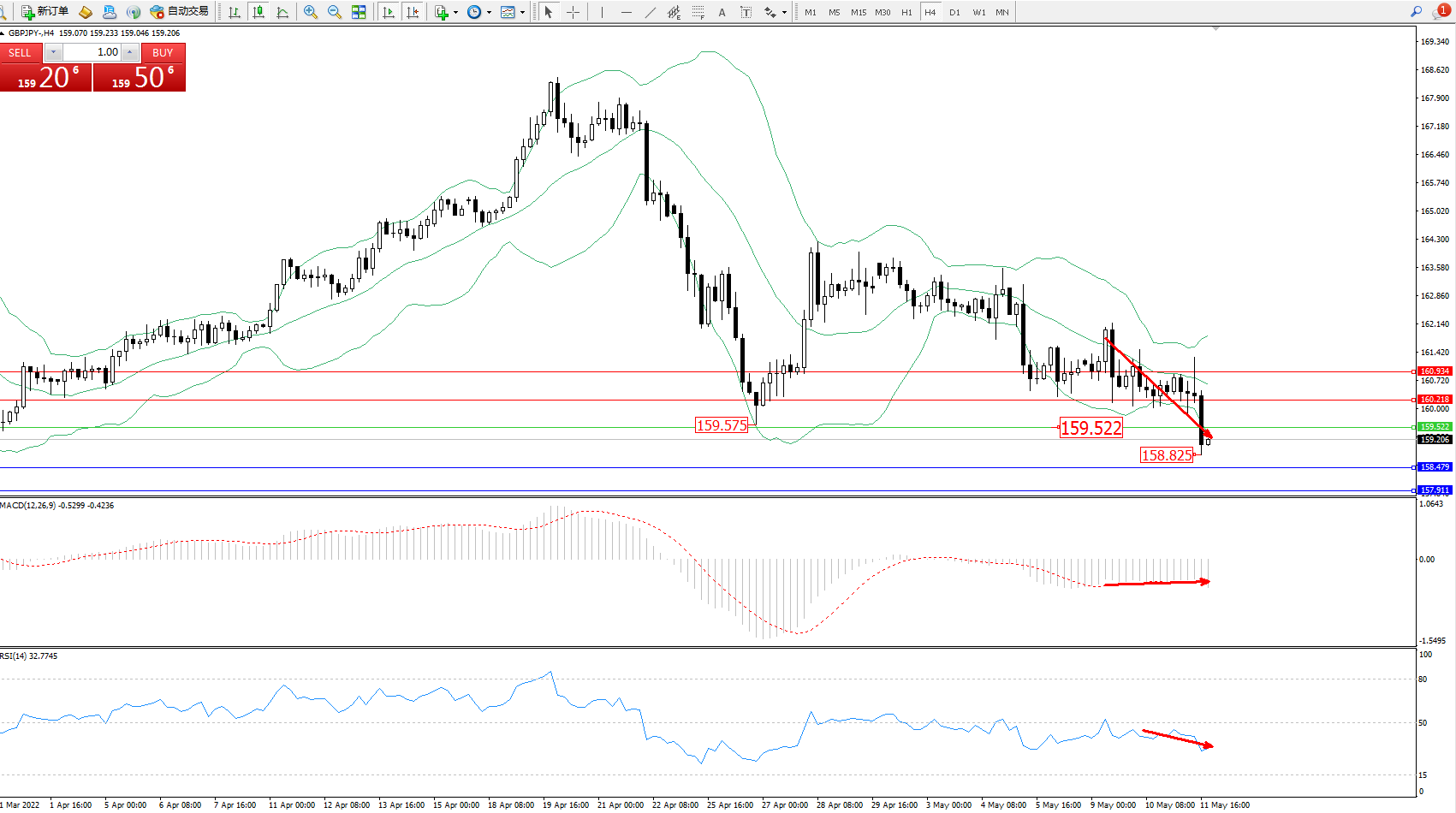 技术点评:空头动力延续布林带指标通道中下轨区间持续震荡下行,低位下破布林带指标下轨至158.825附近节点后有继续下行态势,布林带指标呈收口走势后开始逐渐张口,MACD指标处于0轴线下侧弱势整理平移,RSI指标处于50均衡线下侧维持整理平移后开始下行;