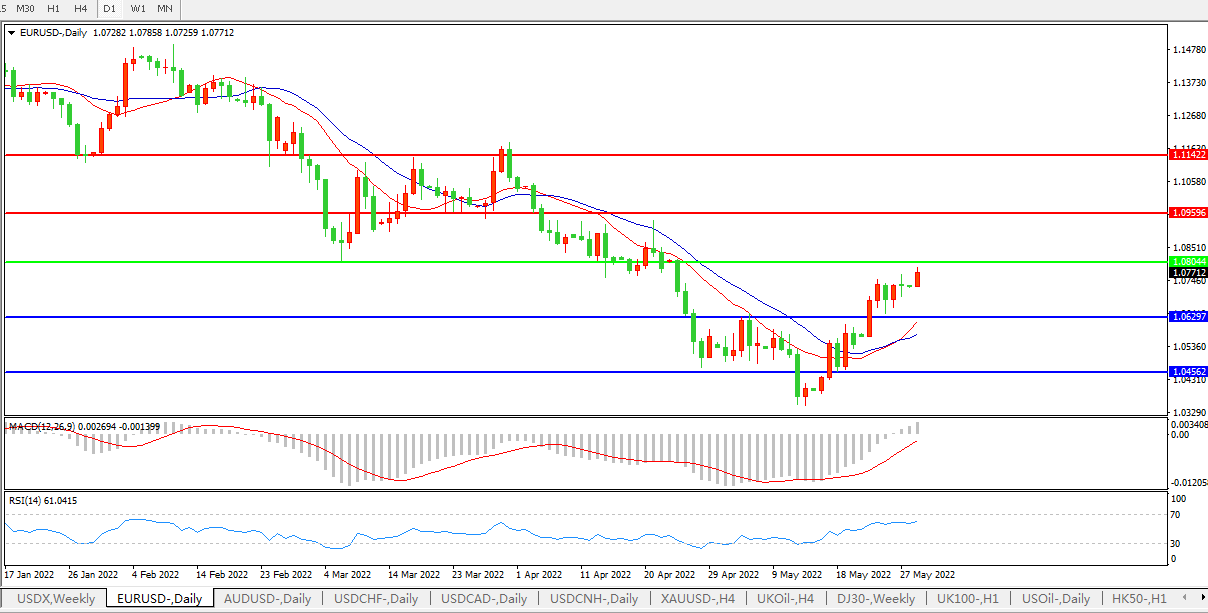 交易策略:1.0800下方看跌,目标1.0630、1.0460