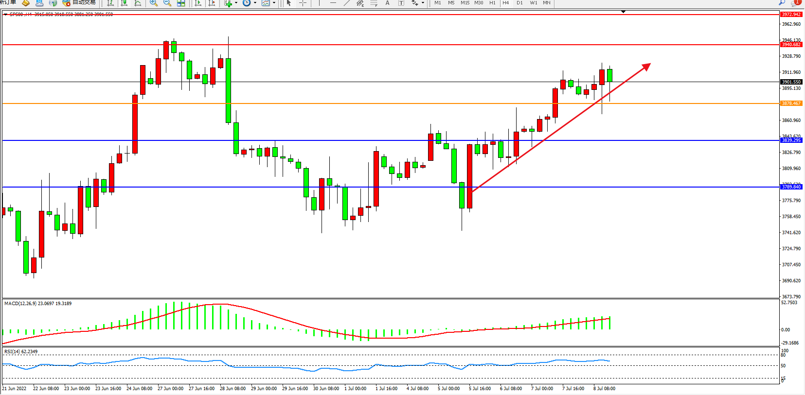 标普500指数7月8日(周五)收盘下跌4.12点,跌幅0.11%,报3898.50点;美联储下一次议息会议将于7月26日至27日召开,并于28日作出决议。美联储利率委员会投票成员梅斯特表示,7月份的议息会议可能会涉及50或75个基点的辩论,如果经济状况仍保持不变,她将主张提高75个基点。