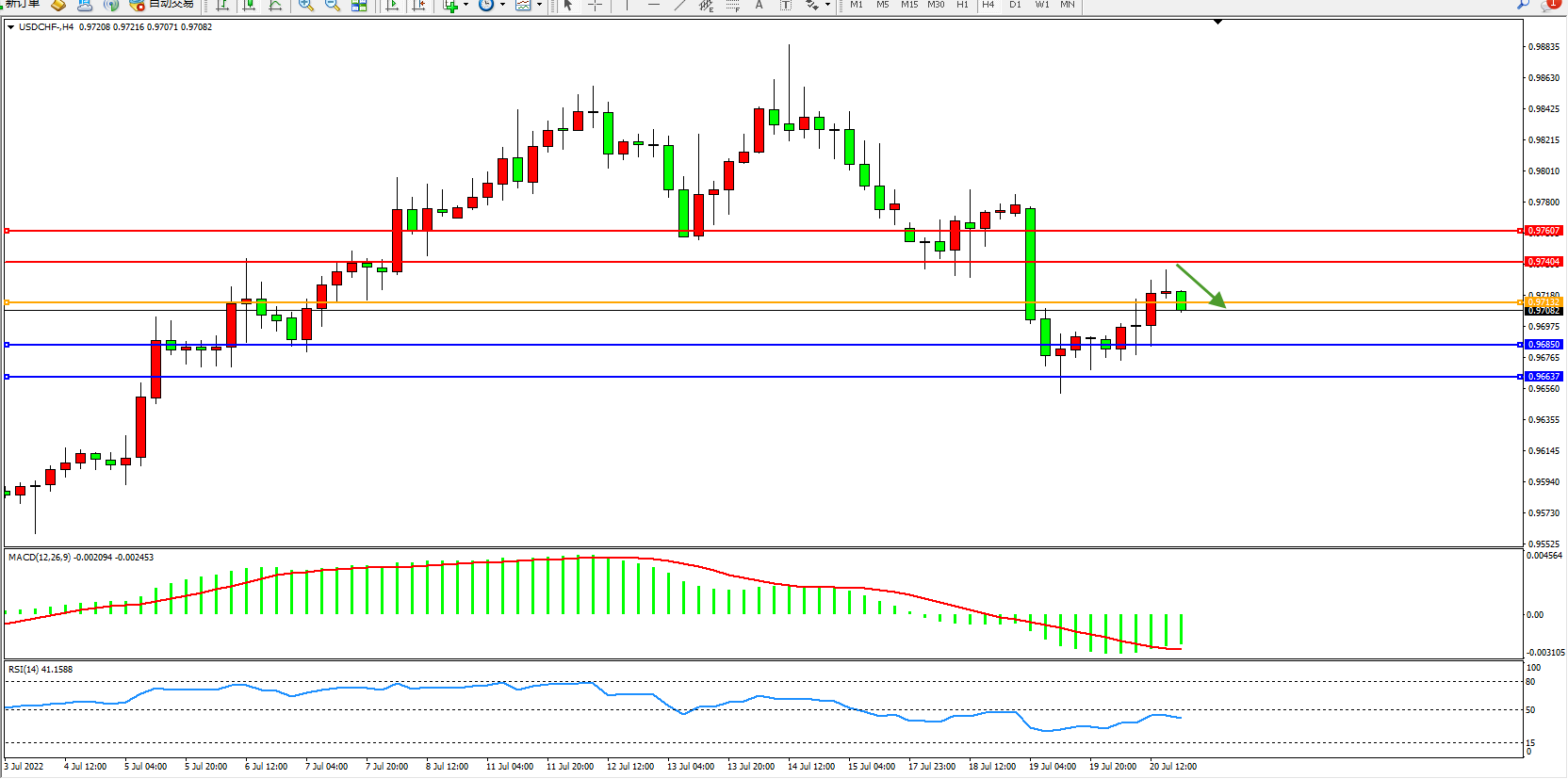 备选策略:0.97132上方看涨,目标0.97404、0.97607