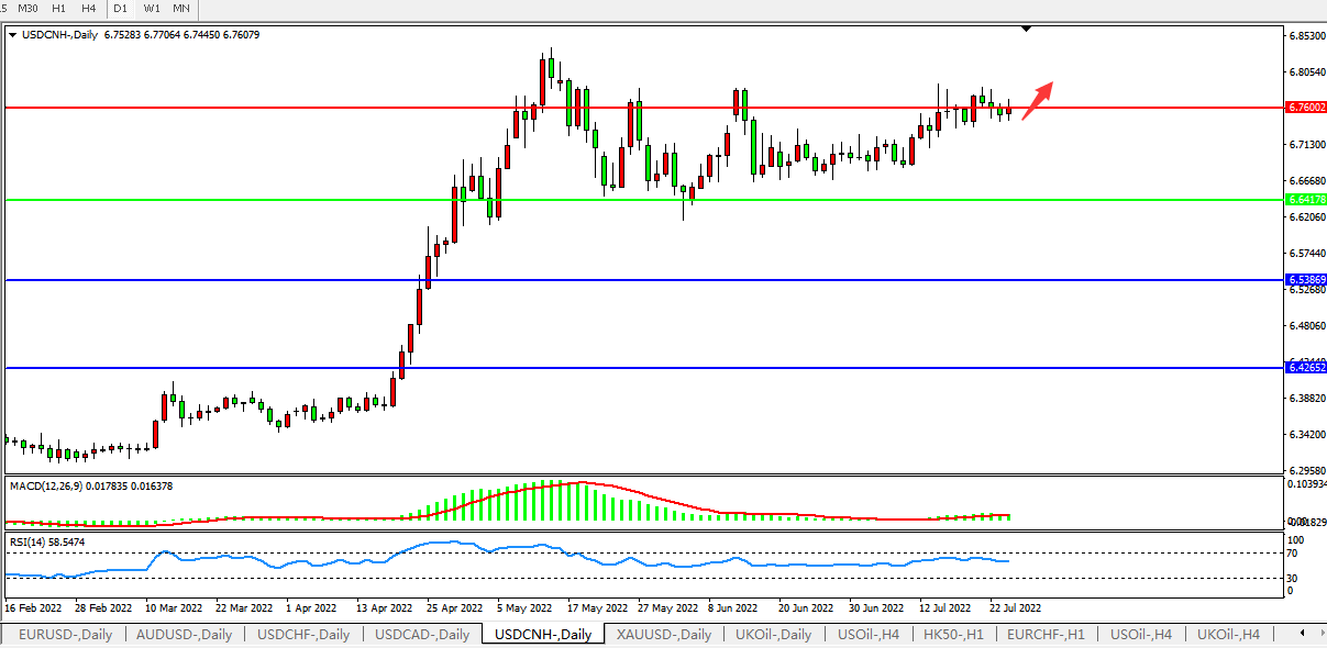 交易策略:在6.6416之上,看涨,目标价位为6.7600、6.8870