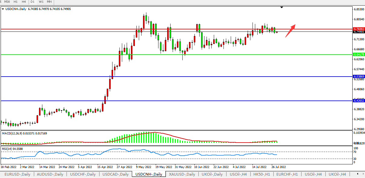 美元人民币USDCNH 日线图: