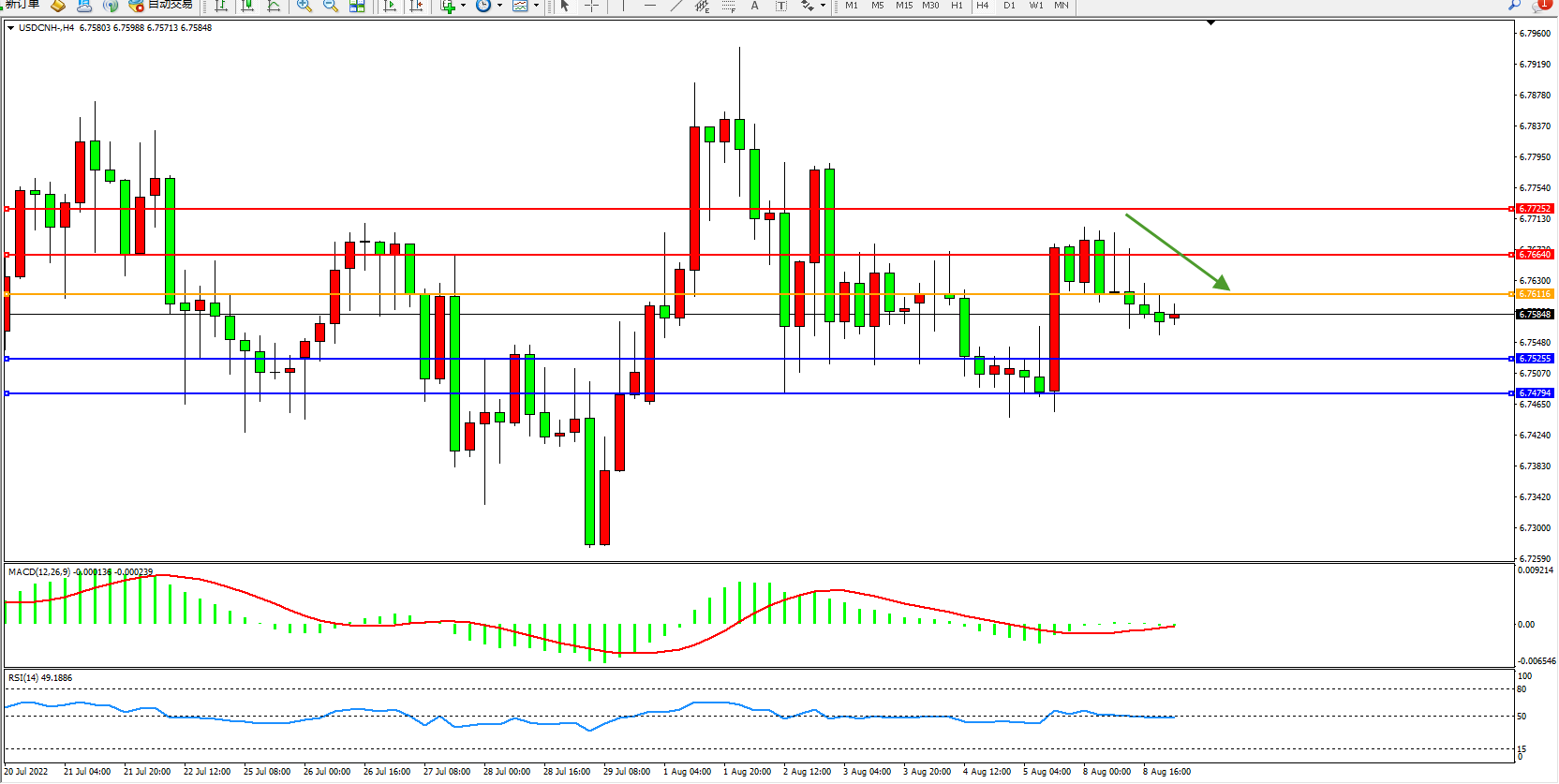 备选策略:6.76116上方看涨,目标6.76640、6.77252