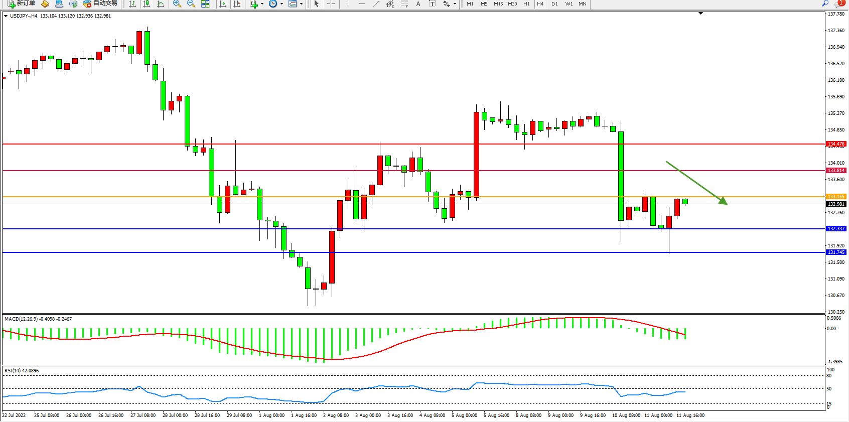 4小时图看:空头动力持续震荡下行,短期跌势或将延续,MACD指标处于0轴线下侧徘徊,RSI指标处于50均衡线下侧窄幅整理;