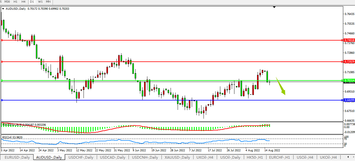 备选策略:0.7030上方看涨,目标0.7200、0.7400