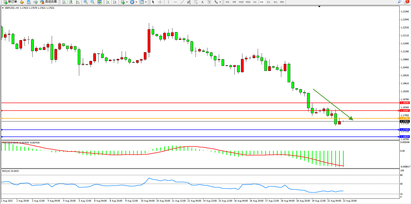 英镑兑美元维持1.17631附近震荡,英国滑向衰退的势头增强。数据显示英国通胀率跃升至10%以上,工资增速远远落后于物价上涨,消费者信心降至纪录低点。
