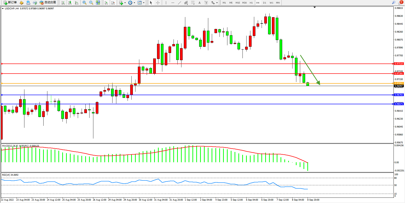 交易策略:0.97052下方看跌,目标0.96783、0.96571