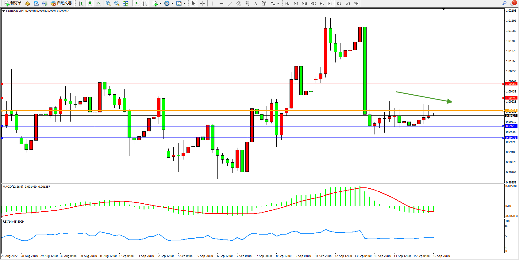 欧元兑美元维持0.99937附近震荡,由于欧洲天然气危机、高通胀和全球货币政策收紧对经济前景造成严重影响,惠誉预计到12月欧洲央行再融资利率将升至2%。